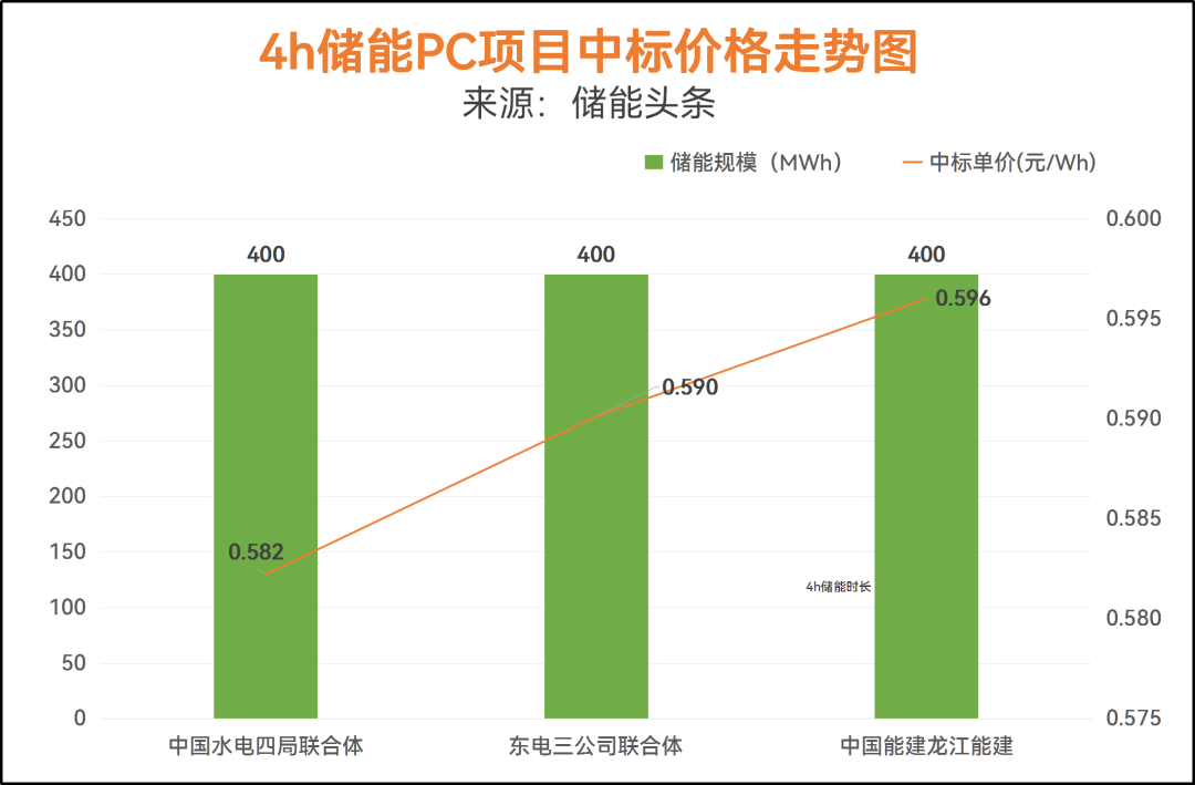 4小时储能PC,报价在0.582~0.596元/Wh之间,均价为0.589元/Wh。