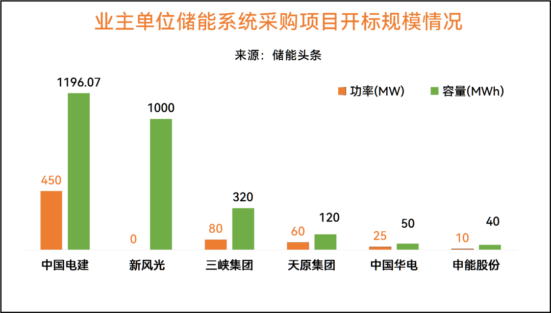 具体来看,中国电建以1196.07MWh位列第一,新风光以1000MWh列第二,三峡集团以320MWh列第三。