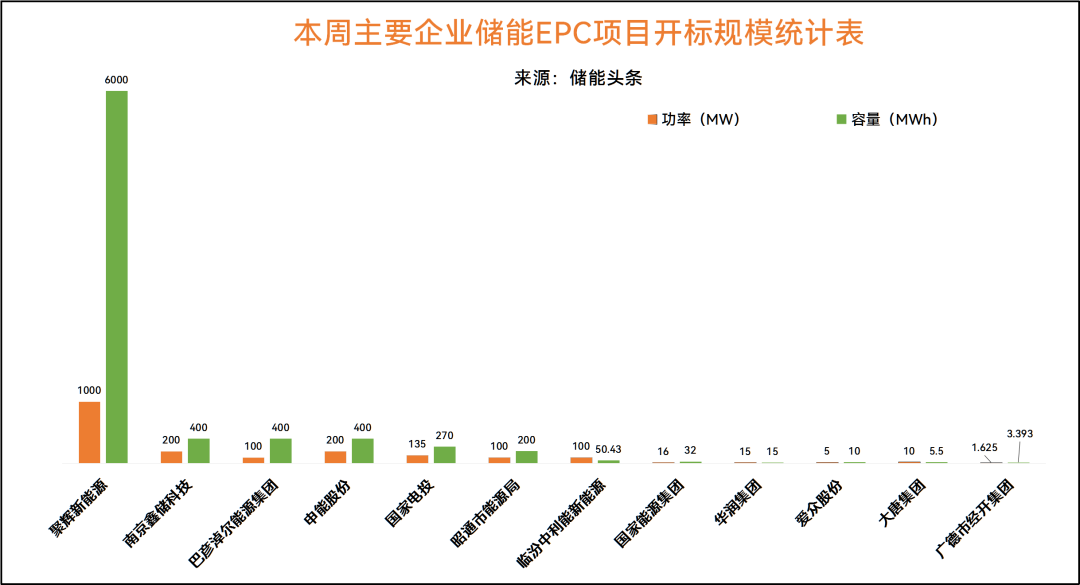 聚辉新能源、南京鑫储科技、巴彦淖尔能源集团、申能股份、国家电投、昭通市能源局、临汾中利能新能源、国家能源集团、华润集团、爱众股份、大唐集团、广德市经开集团、南方电网等13家单位公布15个储能EPC中标项目。