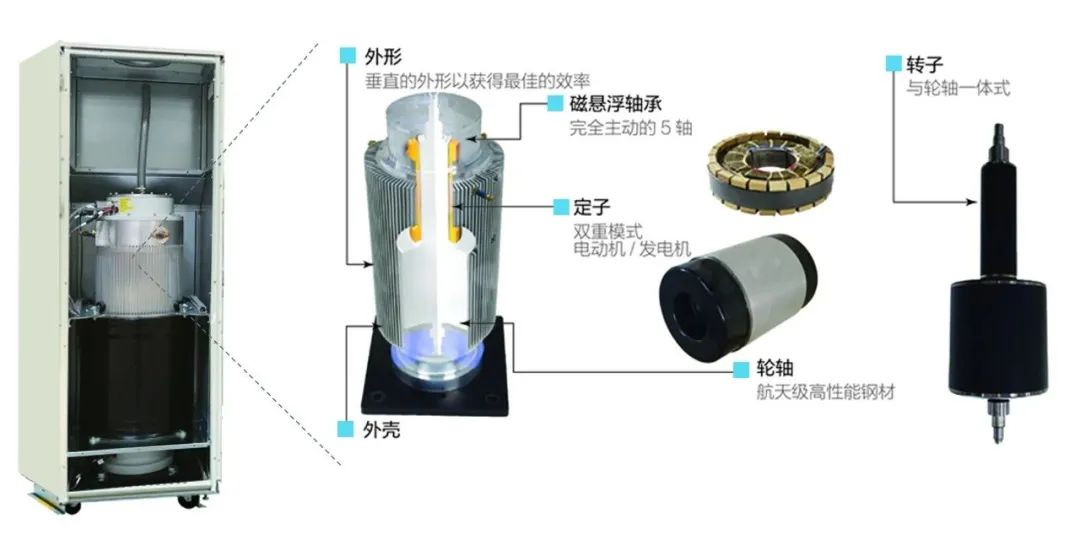 飞轮储能的工作原理:在电力富余条件下,由电能驱动飞轮高速旋转,将电能转变为机械能储存;当系统需要时,飞轮减速,电动机作发电机运行,将飞轮动能转换成电能,供用户使用。飞轮储能通过转子的加速和减速,实现电能的存入和释放。与其他储能模式相比,飞轮储能具有使用寿命长、充电次数多、能量密度高、安全环保性能佳的特点,非常适合电力系统一次调频短时高频大功率的应用场景。