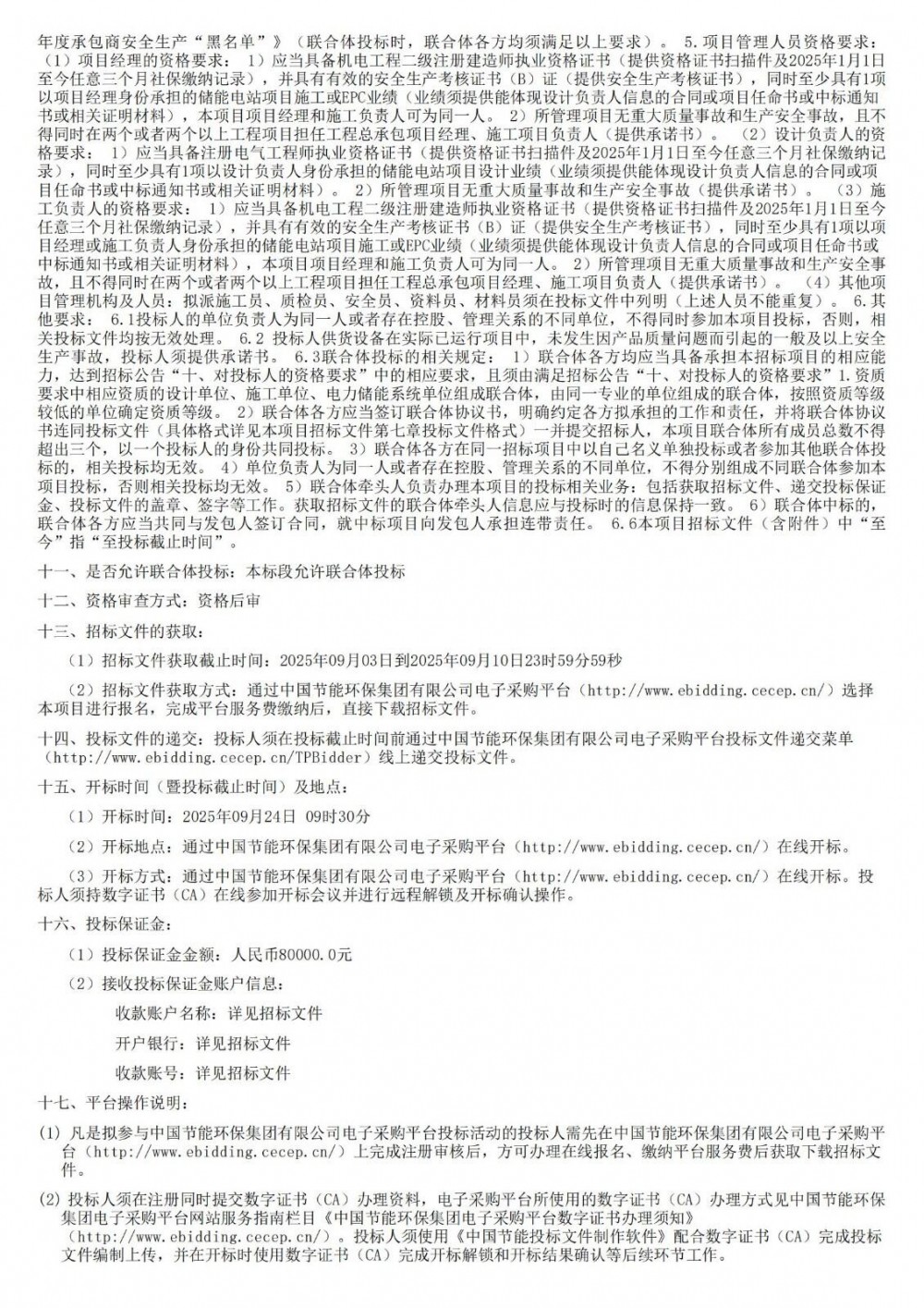 9月3日,中节能太阳能宁夏公司、石嘴山农业公司两个光伏电站配建储能电站项目EPC工程总承包招标公告发布。项目招标人为中节能太阳能股份有限公司,本项目工程范围为完成2个光伏电站配套建设储能项目(配储总容量为直流侧10MW/20MWh)竣工验收所涉及到的所有勘察、设计、采购、安装和施工工作以及运维相关附属设施及工具采购。