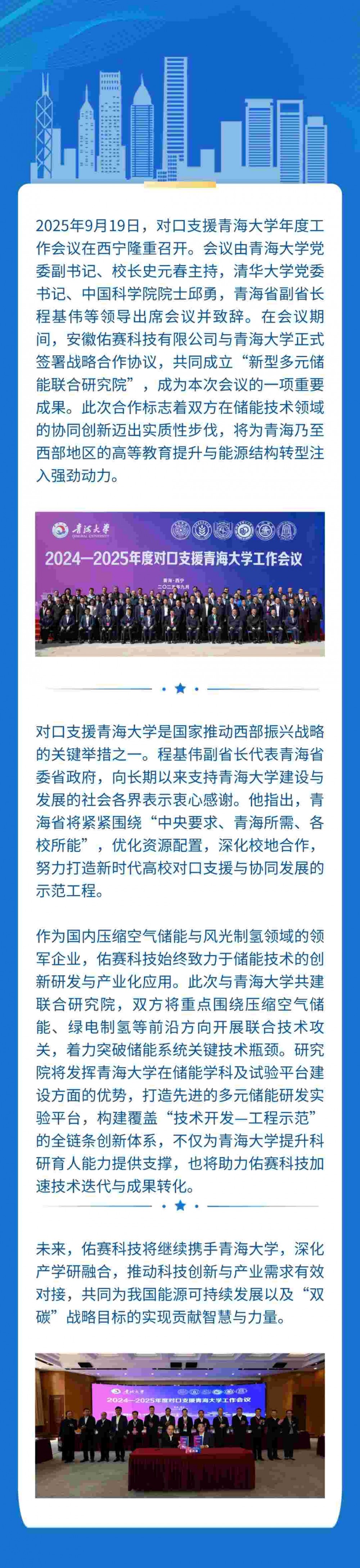 重点围绕压缩空气储能等前沿方向开展联合技术攻关!佑赛科技与青海大学共建新型多元储能联合研究院