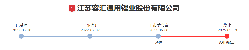 2020年12月23日容汇锂业获上交所受理,保荐机构为东吴证券股份有限公司。首次申报科创板IPO一年时间后,容汇锂业及保荐人东吴证券申请撤回申请文件,2021年12月11日,上交所终止其发行上市审核。