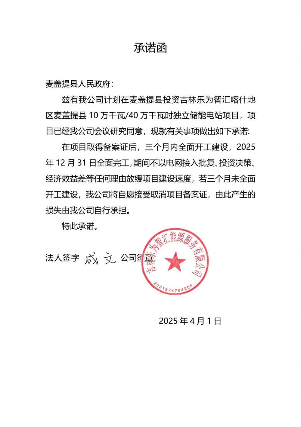 10月9日,新疆喀什麦盖提县发展和改革委员会发布废止吉林乐为智汇喀什地区麦盖提县10万千瓦40万千瓦时独立储能电站项目的告知函,告知函提到,由于该公司取得项目备案后3个月内未启动建设,决定废止该项目。