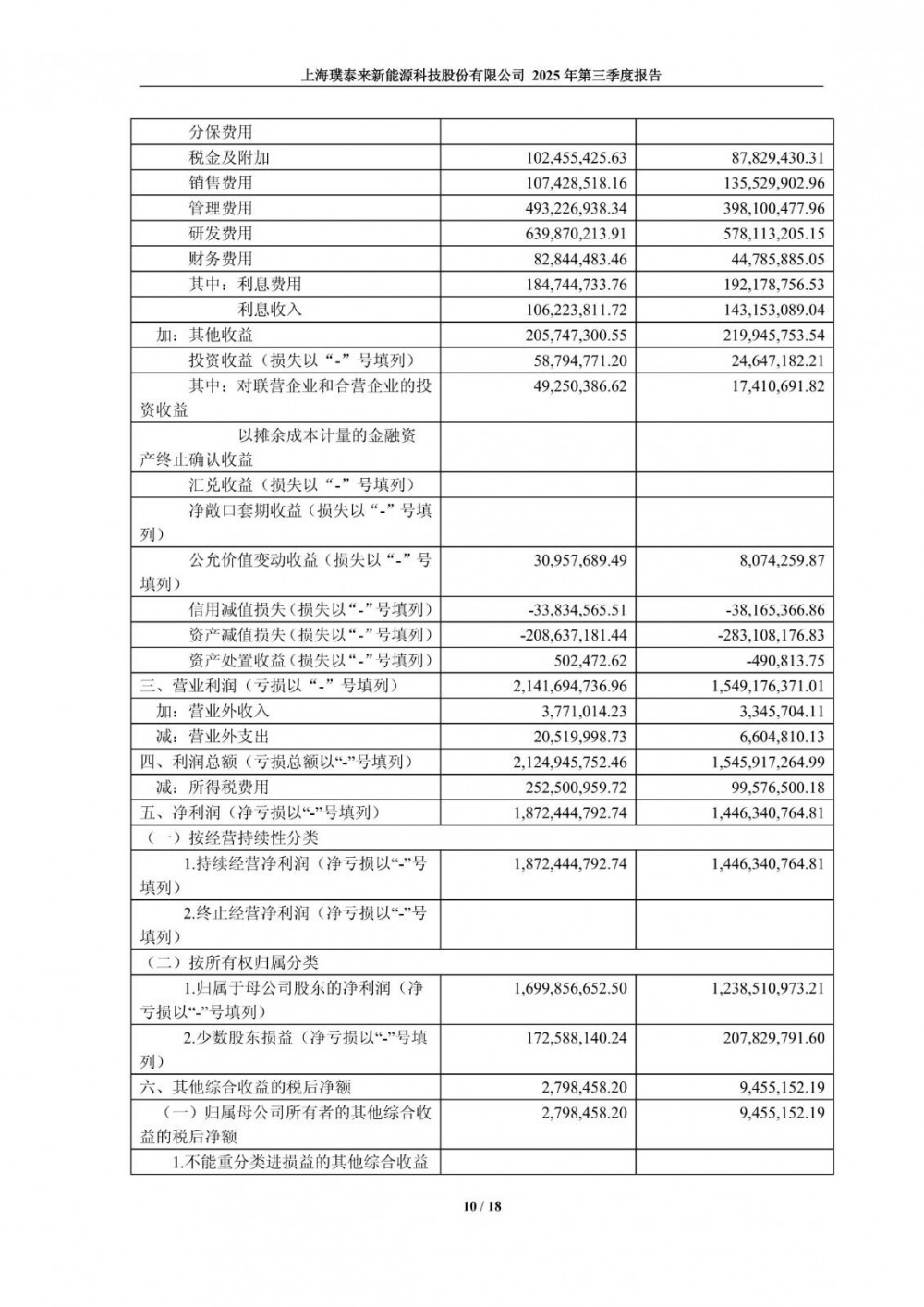 10月27日,璞泰来发布2025年第三季度报告。前三季度实现营业收入108.30亿元,同比增长10.06%;净利润17亿元,同比增长37.25%。第三季度实现营业收入37.42亿元,同比增长6.66%;净利润6.45亿元,同比增长69.30%。