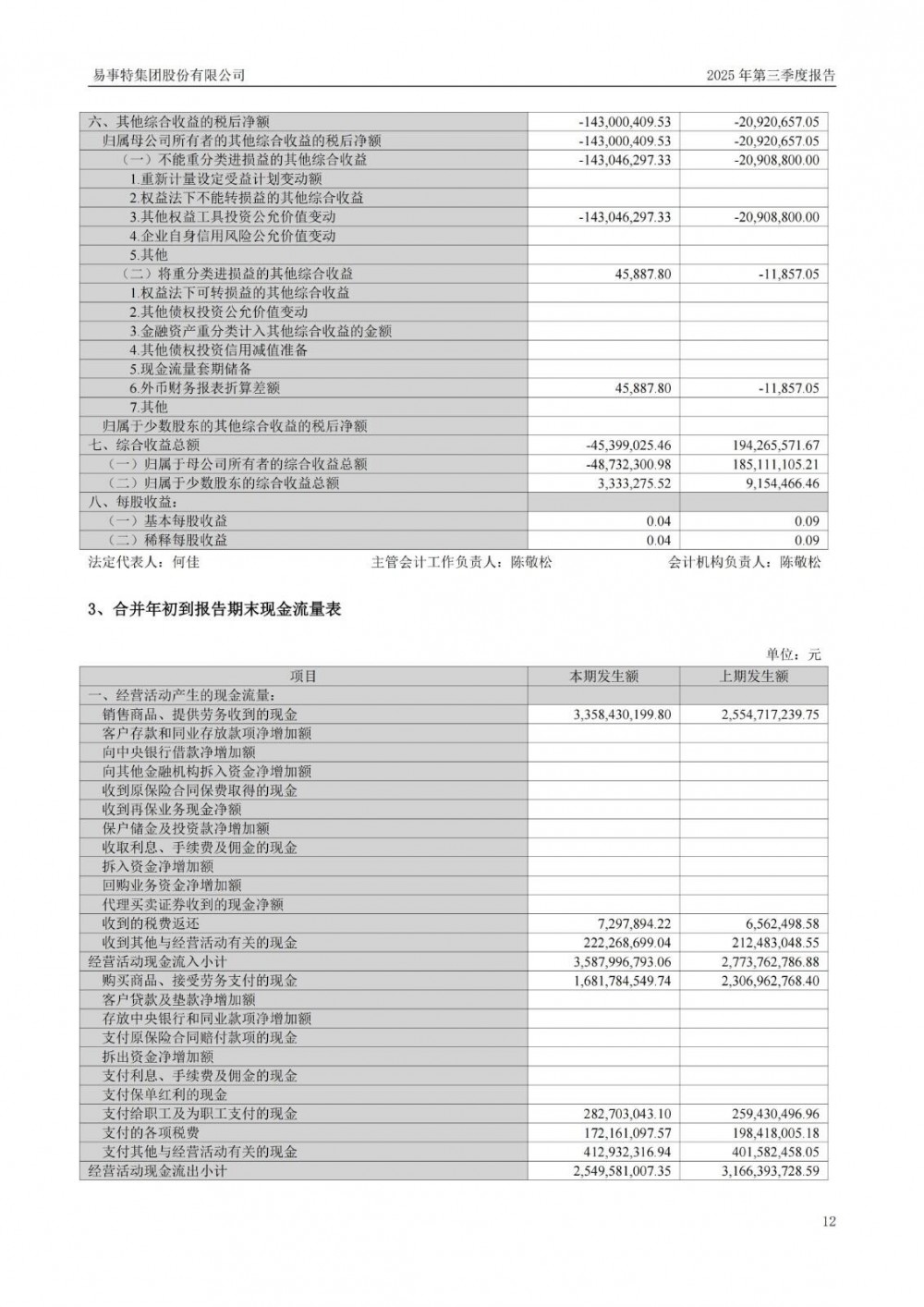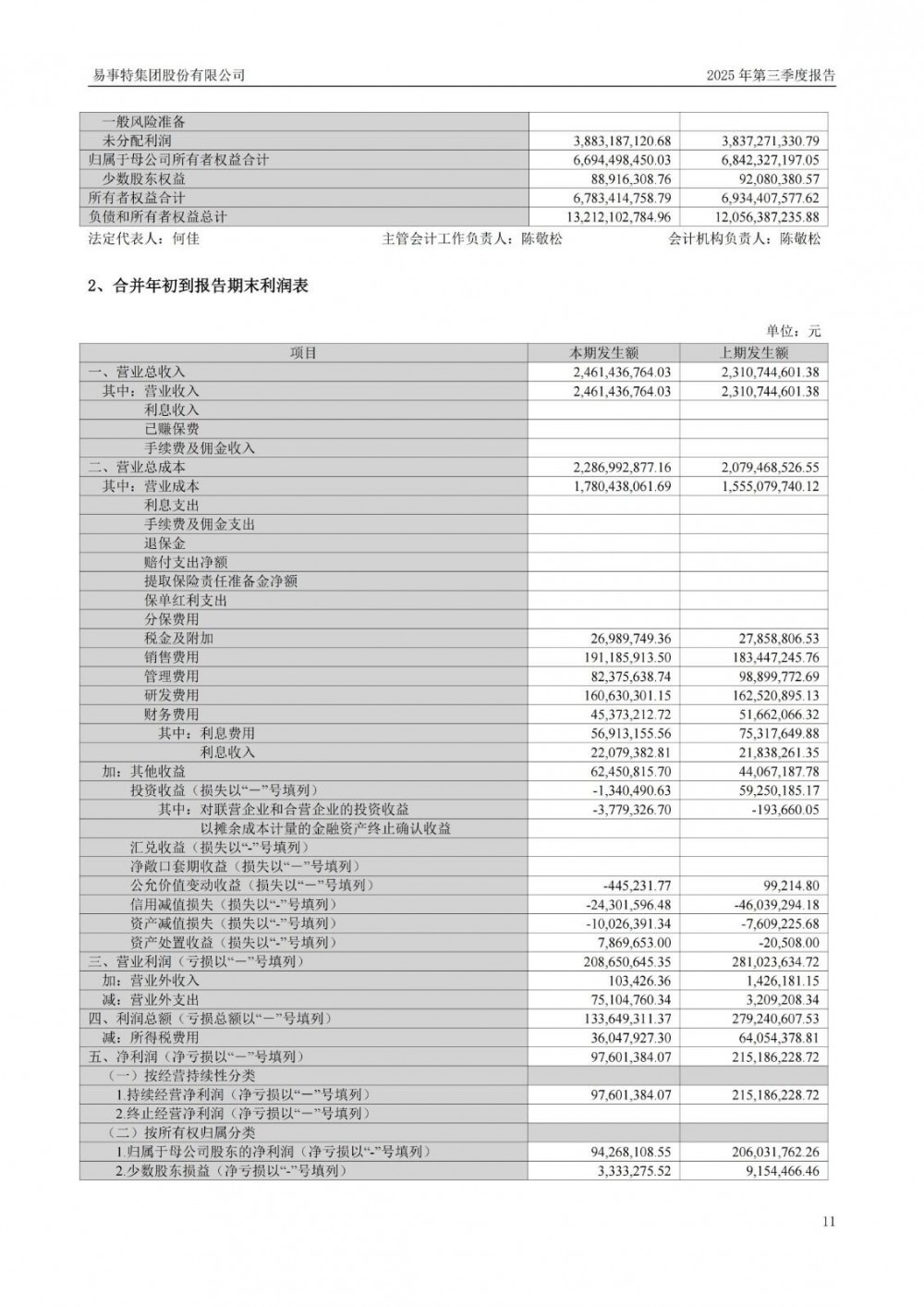 10月27日,易事特发布2025年三季度报告。前三季度公司实现营业总收入24.61亿元,同比增长6.52%;归母净利润9426.81万元,同比下降54.25%;扣非净利润1.46亿元,同比增长4.13%。