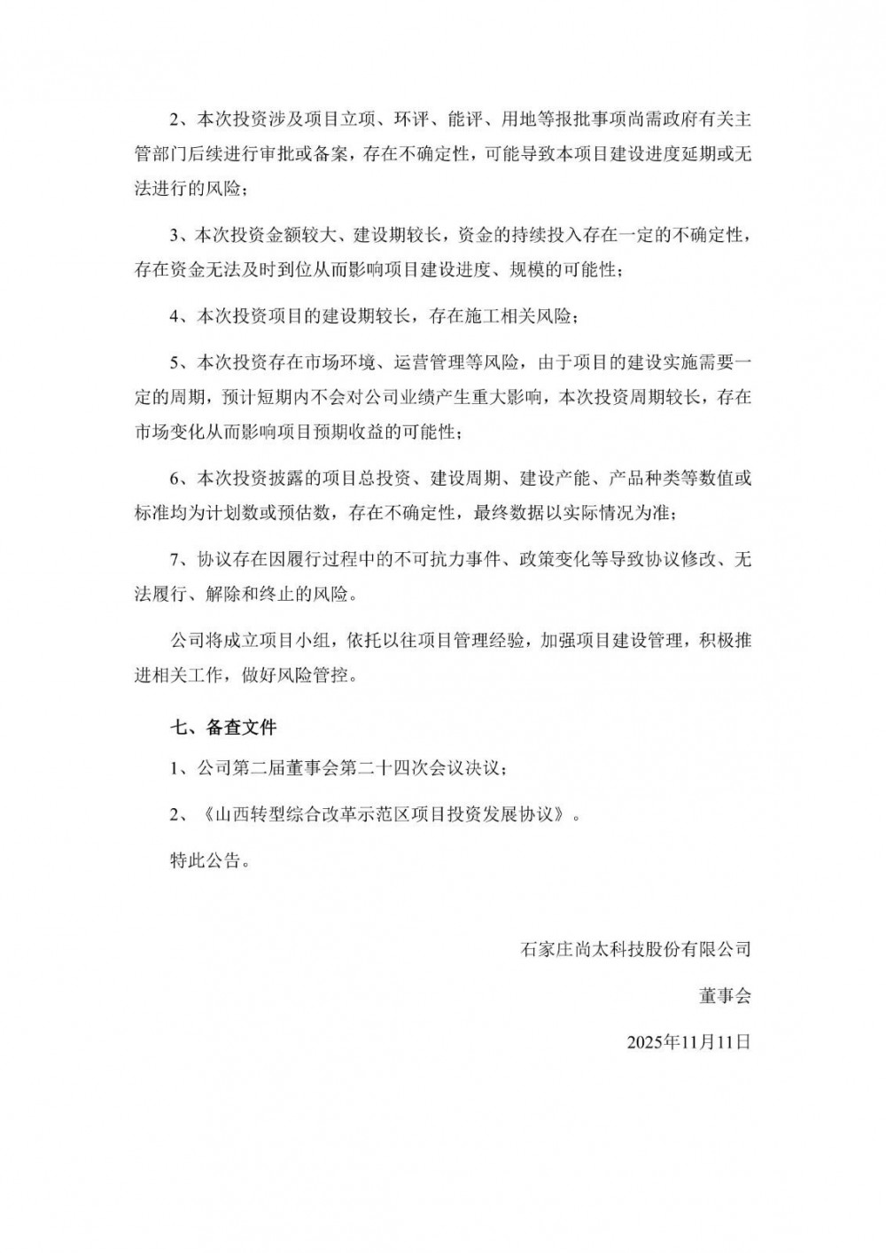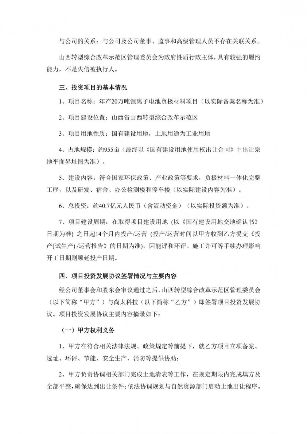 尚太科技表示,本项目投资资金来源为公司的自有或自筹资金,公司将根据项目规划和实施进度分期投入资金,短期内不会对公司财务状况和经营成果产生重大影响,从长远来看,本次投资有利于公司的持续经营与发展能力,增强公司的核心竞争力和综合实力,符合公司的发展战略,不存在损害公司及全体股东利益的情形。