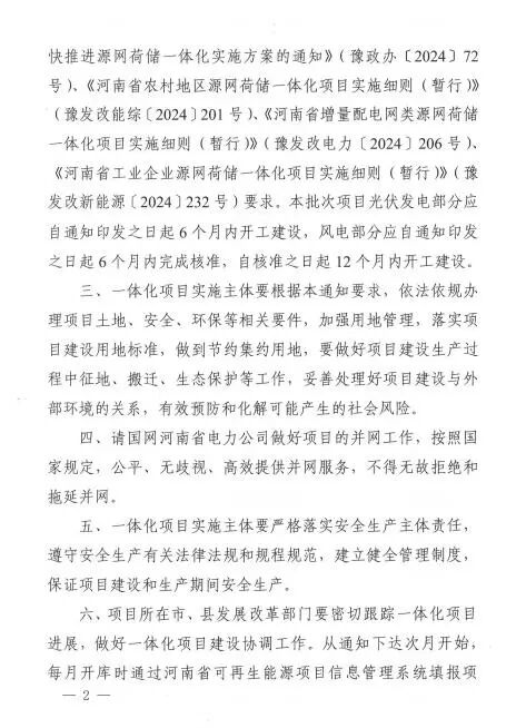 本批次项目光伏发电部分应自通知印发之日起6个月内开工建设,风电部分应自通知印发之日起6个月内完成核准,自核准之日起12个月内开工建设。