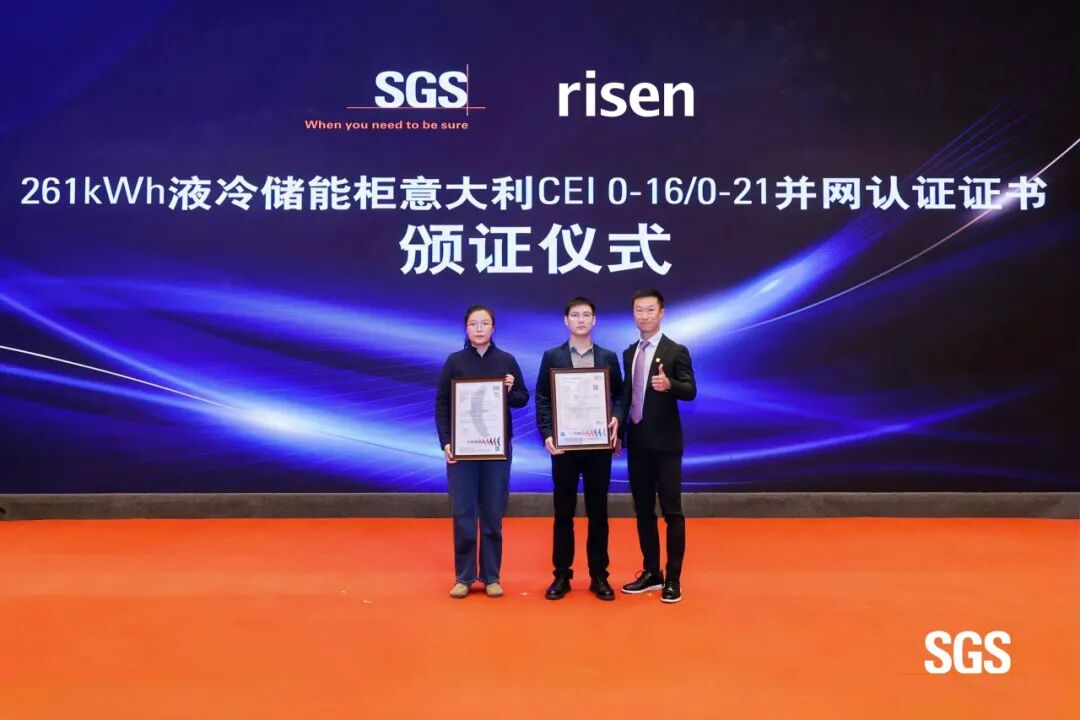 近日,东方日升iCon 125kW/261kWh液冷储能柜成功获得国际公认的测试、检验和认证机构SGS颁发的意大利中低压并网认证证书,该认证标志着东方日升储能产品满足意大利法定准入要求,获市场合规认可。