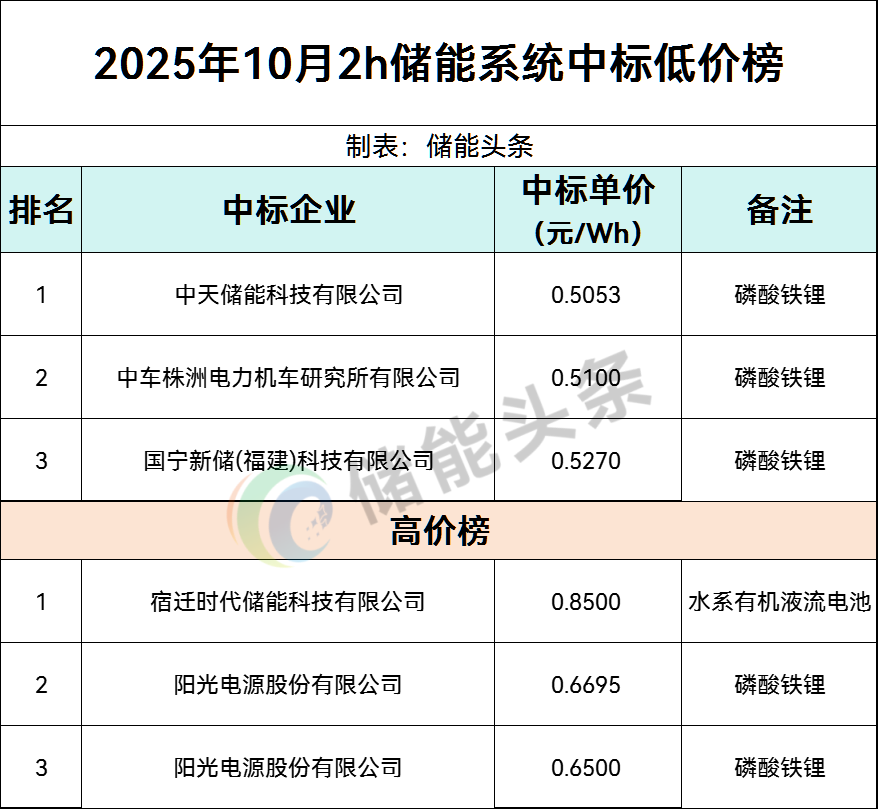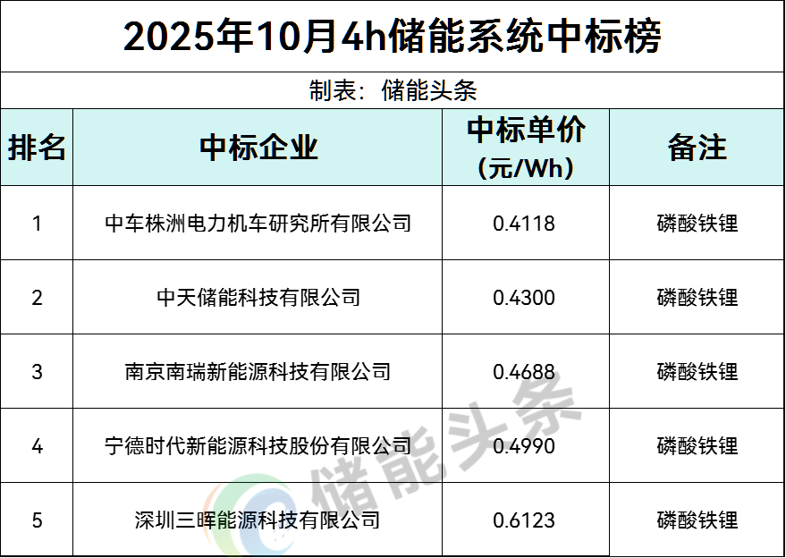 8月14日,中国能建2025年度磷酸铁锂电池储能系统集中采购项目公布中标结果。