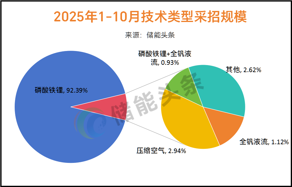 4、磷酸铁锂储能技术占比92.39%