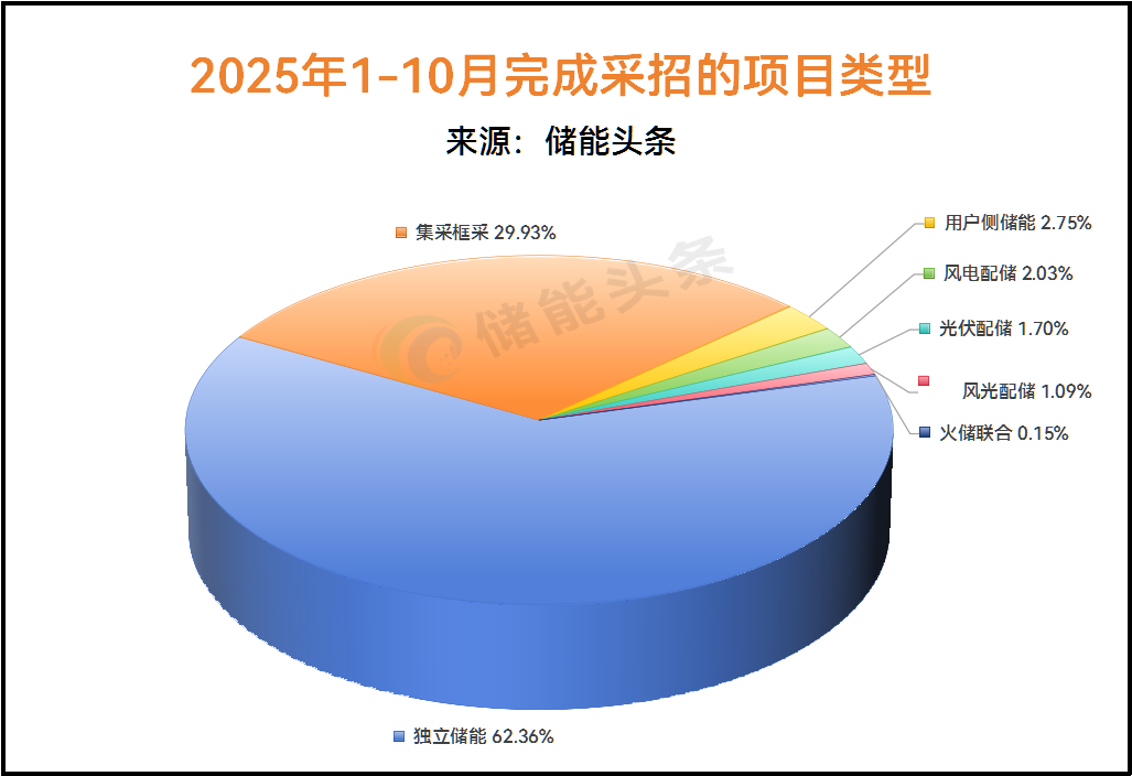 此外,2025年1-10月独立储能项目的设备采招规模达到了216.497GWh,占比62.36%。