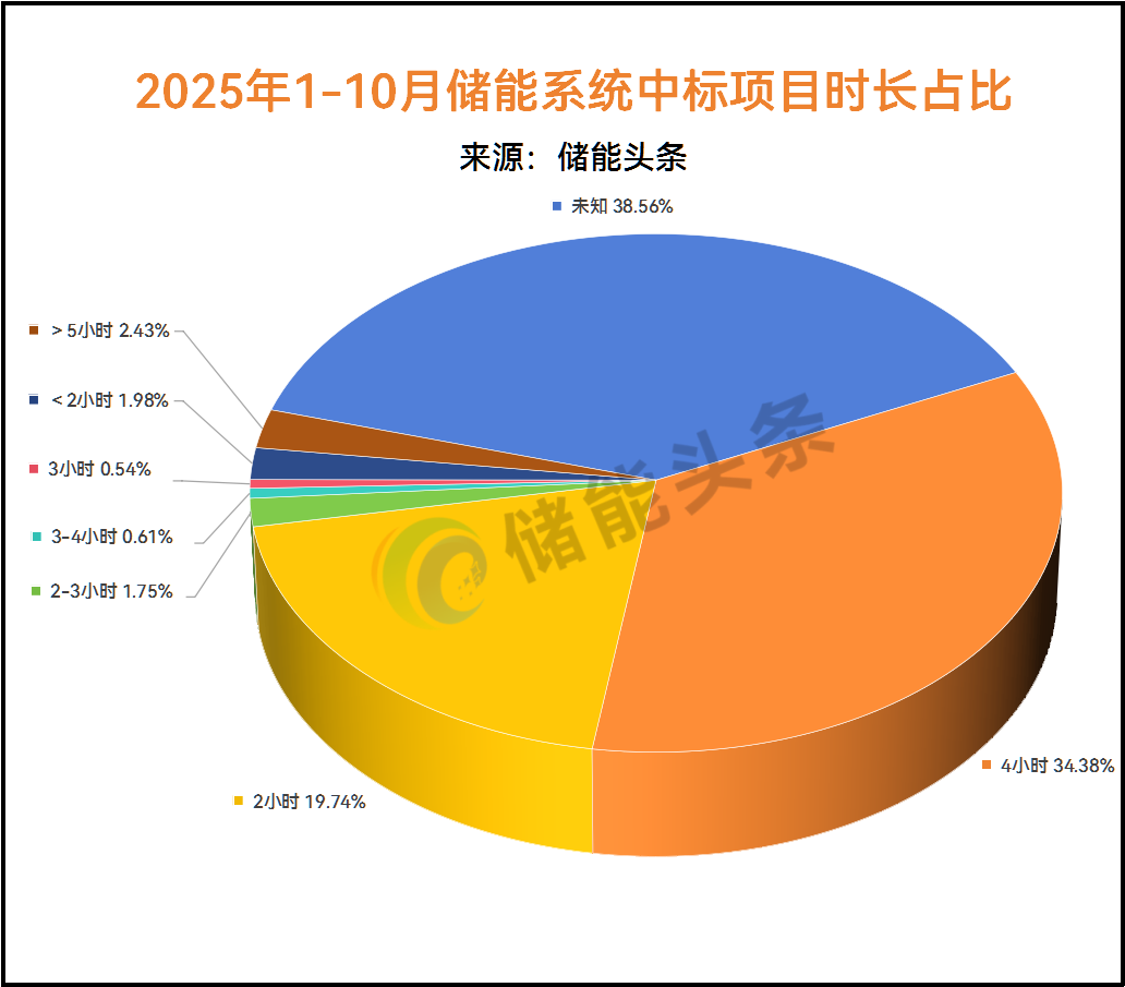 从储能时长来看,据电力家统计,2025年1-10月储能系统采购项目中,2小时储能系统共涉32828.507MWh,占比19.74%;4小时储能系统共涉及57178MWh,占比34.38%;2-3小时储能时长共2906.601MWh,占比1.75%。