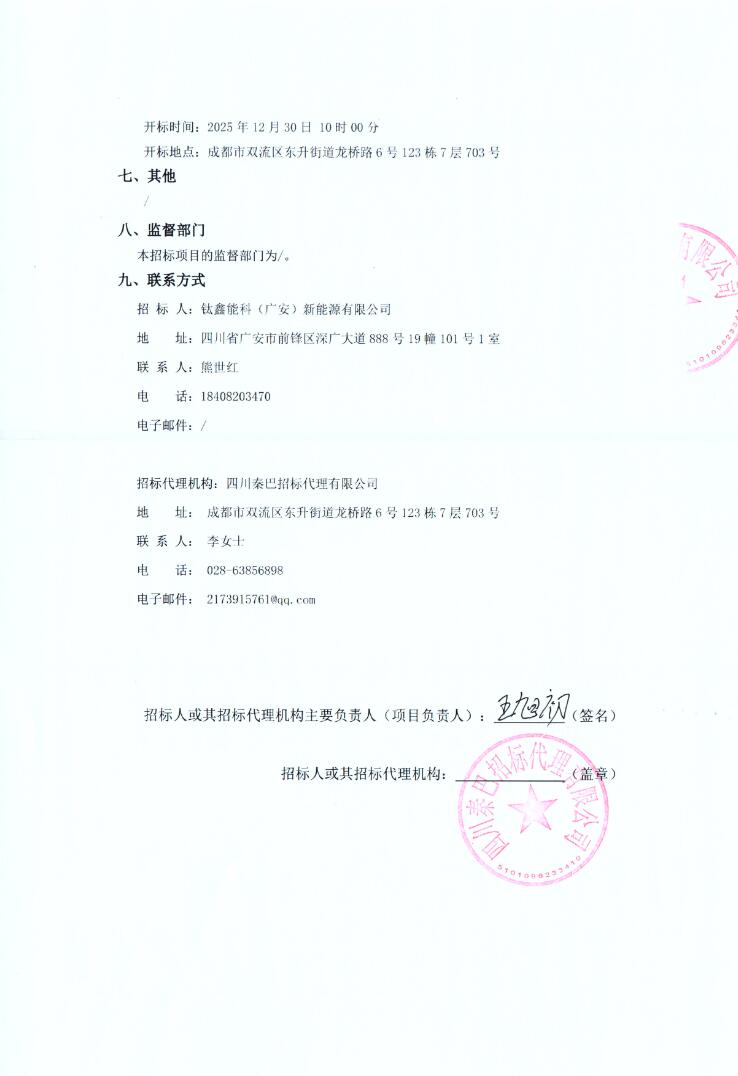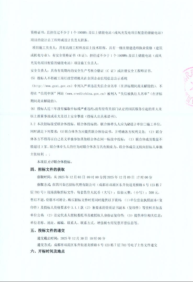 12月2日,广安经济技术开发区钛鑫能科150MW/225MWh电化学混合储能电站EPC总承包项目招标公告发布。