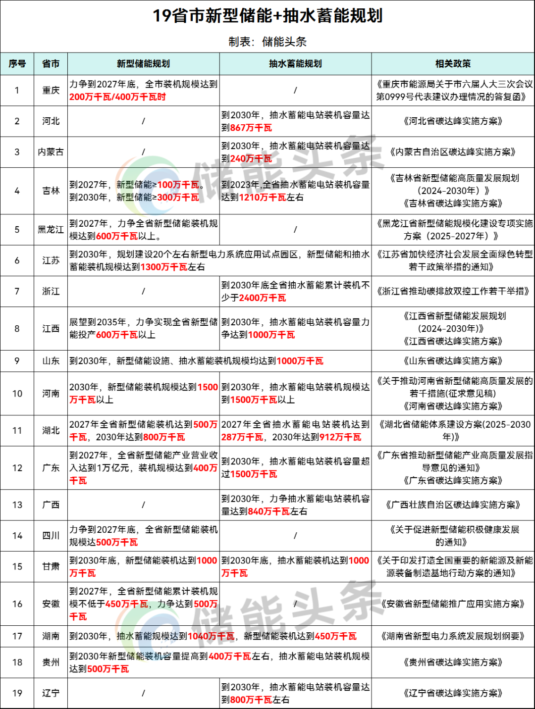 当前,19省市的储能布局已形成“目标明确、政策联动”的格局,既体现了区域能源结构转型的紧迫性,也为新型储能技术应用、抽水蓄能项目建设提供了广阔空间,将助力全国新型电力系统的加速构建。