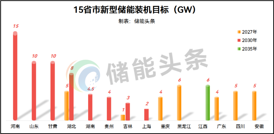 湖北、吉林、重庆、黑龙江、广东、四川、安徽则明确2027年新型储能装机目标。