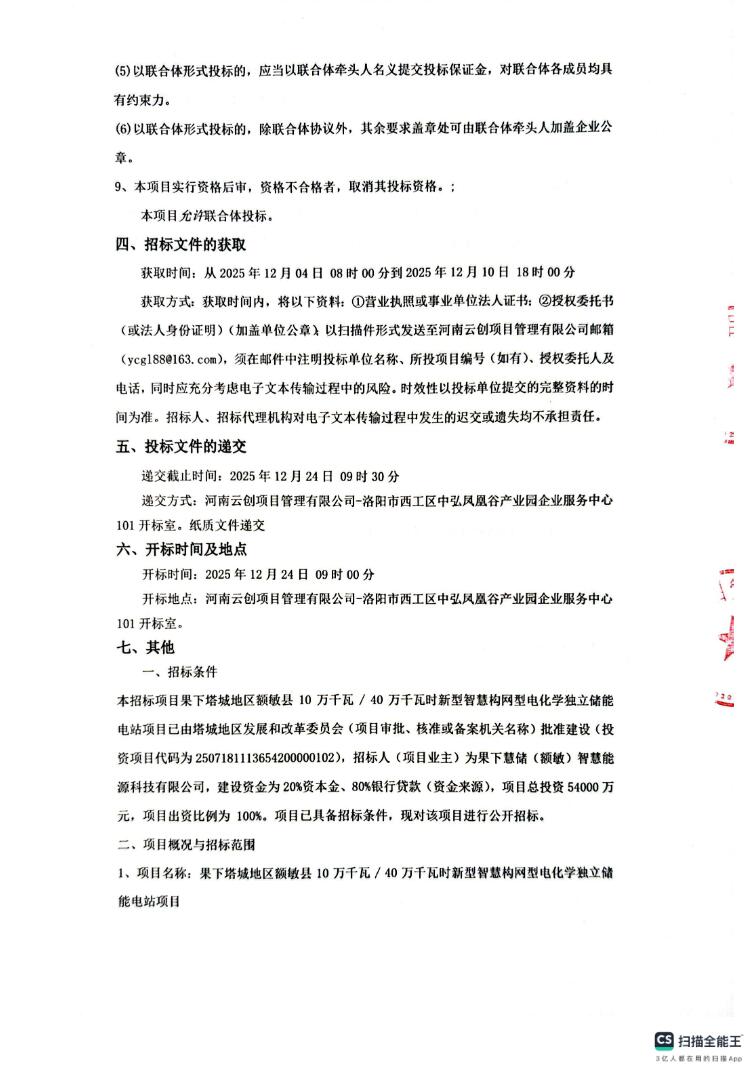 12月3日,果下塔城地区额敏县10万千瓦/40万千瓦时新型智慧构网型电化学独立储能电站项目招标公告发布。