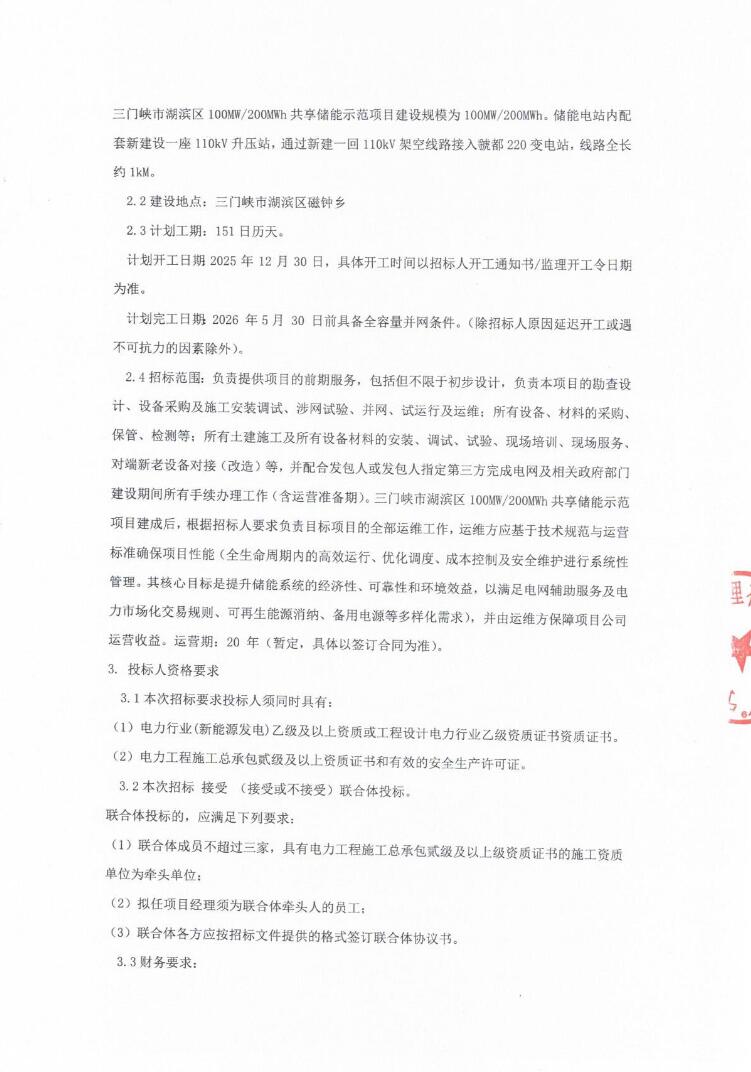 12月3日,三门峡市湖滨区100MW/200MWh共享储能示范项目EPC+O工程总承包招标公告发布。