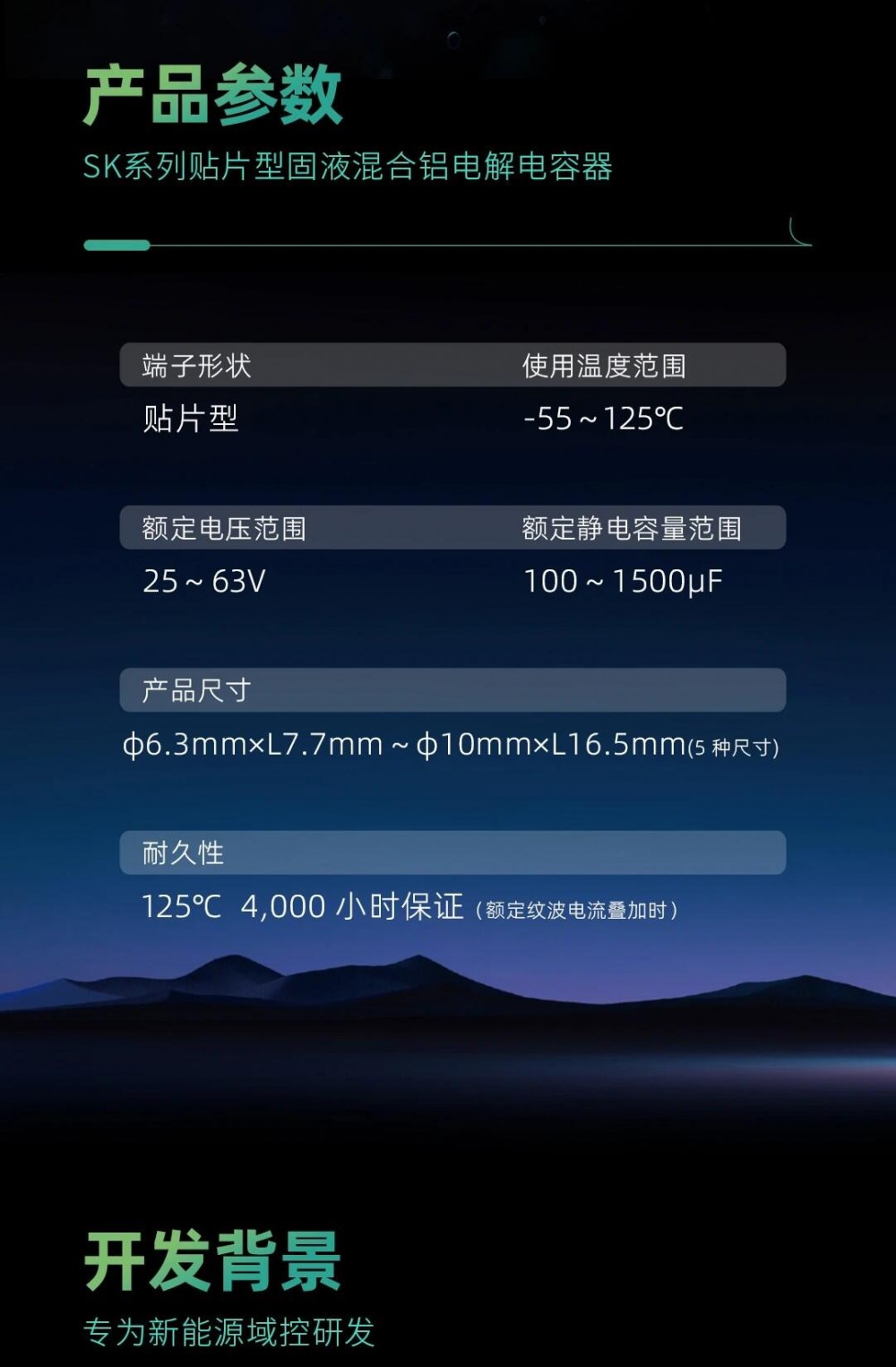 贴片型固液混合铝电解电容器“SK系列”新品发布