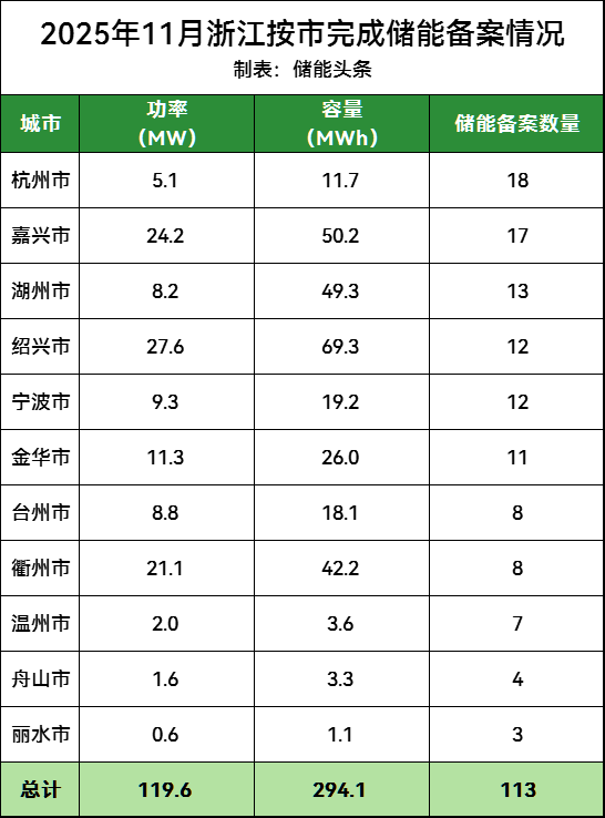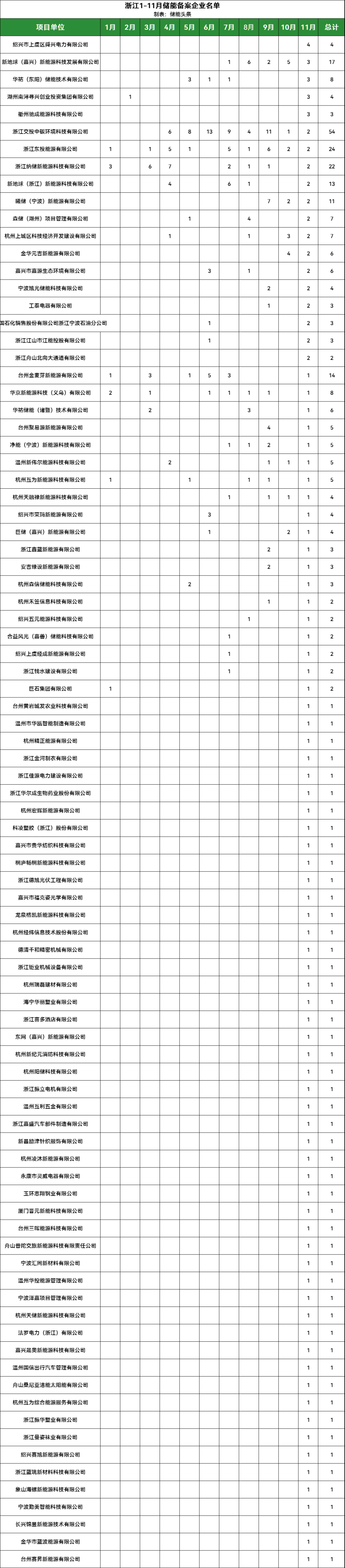 浙江交投中碳环境科技有限公司、浙江东投能源有限公司、浙江纳储新能源科技有限公司、新地球(浙江)新能源科技有限公司、曦储(宁波)新能源有限公司、森储(湖州)项目管理有限公司、杭州上城区科技经济开发建设有限公司、金华元吉新能源有限公司、嘉兴市嘉源生态环境有限公司、宁波旭光储能科技有限公司、工泰电器有限公司、中国石化销售股份有限公司浙江宁波石油分公司、浙江江山市江能控股有限公司、浙江舟山北向大通道有限公司均完成2个储能项目备案;