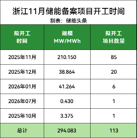 附浙江11月储能备案项目清单: