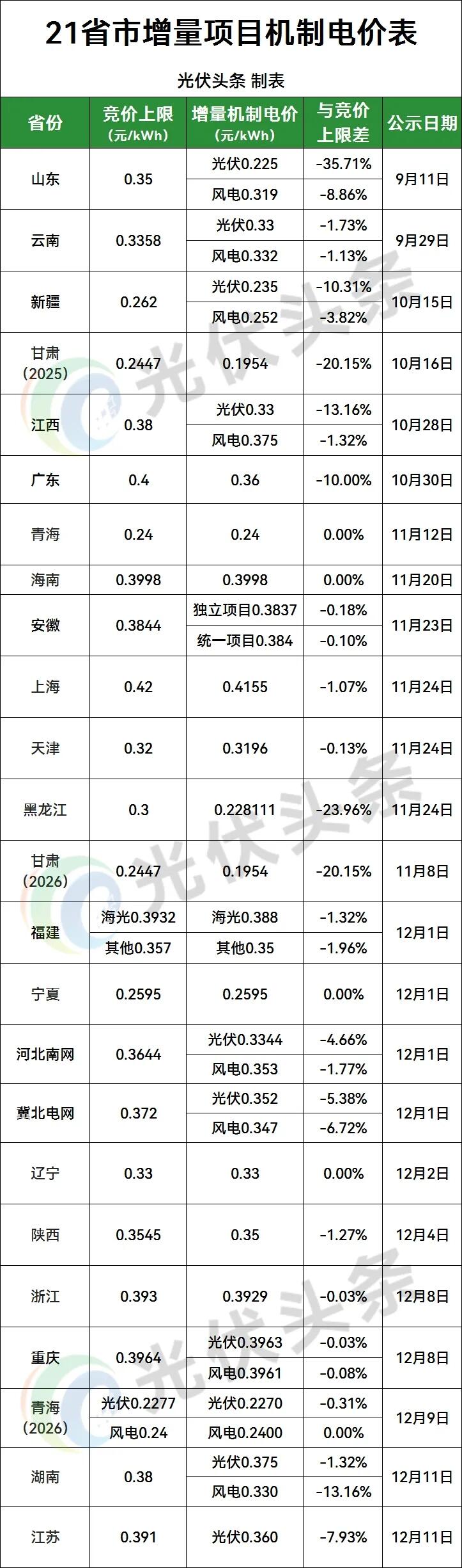 11月11日,江苏省发展改革委关于开展2025-2026年新能源增量项目机制电价竞价工作等有关事项的通知。(详见:江苏136号正式下发:存量0.391元/千瓦时,增量风光同场竞价(附官方解读))