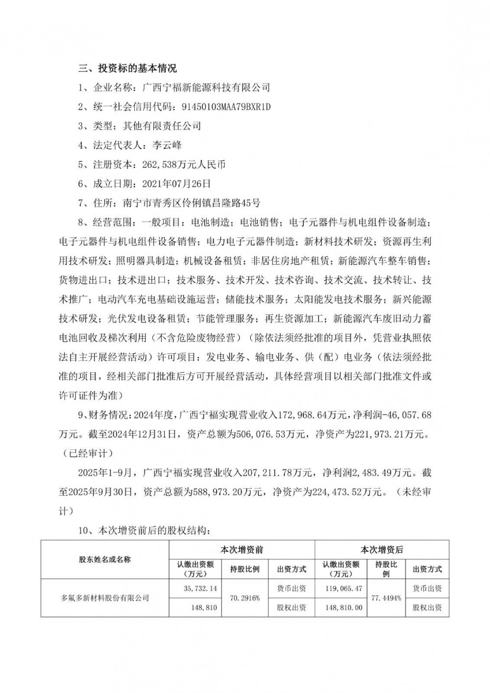 多氟多表示,公司本次对广西宁福进行增资,发展战略明确清晰,有利于促进新能源电池业务板块健康快速发展。本次增资事宜不会对日常经营现金状况产生不利影响,不影响公司合并报表范围,不会对公司当期损益产生重大影响。